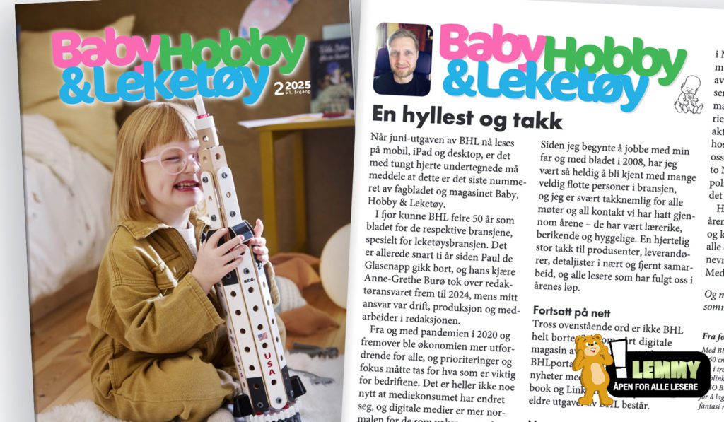 I 2024 stanset fagbladet med trykte utgaver. Nå har de også lansert sitt siste digitale magasin. Det er i den digitale utgaven av Baby, Hobby & Leketøy, nr. 2-2025, at redaktør Hans Henrik de Glasenapp forteller nyheten med «tungt hjerte». Men BHL, som er bladets forkortelse, forsvinner ikke helt, lover han da nettsiden, som er … Fortsett å lese Legger ned fagbladet etter 51 år