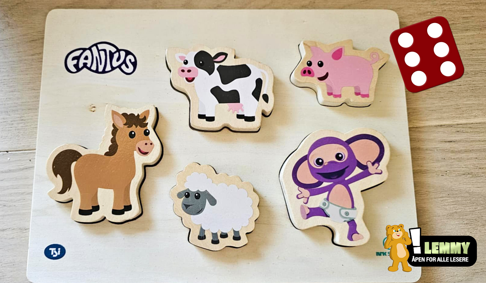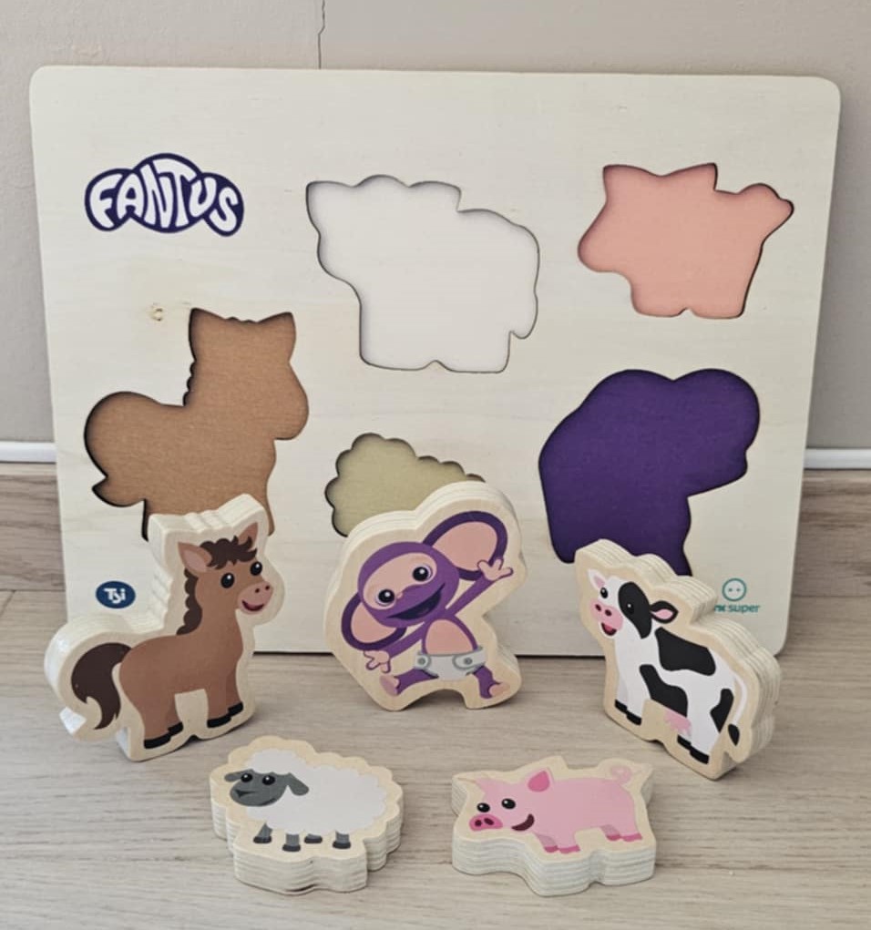 NRK utvider sin serie med offisielle lisensprodukter basert på den populære barne-TV figuren Fantus. Denne gangen med et puslespill i tre. Settet kommer med fem brikker laget i solid treverk med giftfri maling. Brikkene har bilder av Fantus, en hest, en sau, en ku og en gris. Dette er en perfekt introduksjon for bondegården for barn fra 10 måneder og oppover.