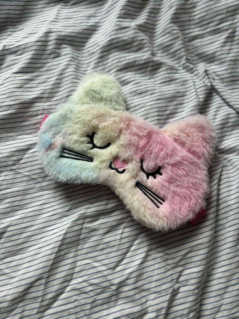 Konklusjon: Sovemasken fra Tinka gjør ting mørkere, slik at man kan sove og samtidig se fluffy ut. Masken har et søtt design og den er myk å ta på. Det er også enkelt å justere til forskjellige hodestørrelser. Masken kan oppleves som stiv til tider.