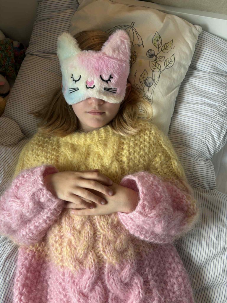 Noen ganger har man behov for en sovemaske. Tinka passer på at man slipper å bruke de kjedelige, svarte sovemaskene man alltid ser på film. Her kan man heller få en sovemaske med et søtt motiv i mykt plysjstoff. Jeg fikk niesen min Wilma (8 år) til å teste hvorvidt sovemasken faktisk gjorde jobben sin.